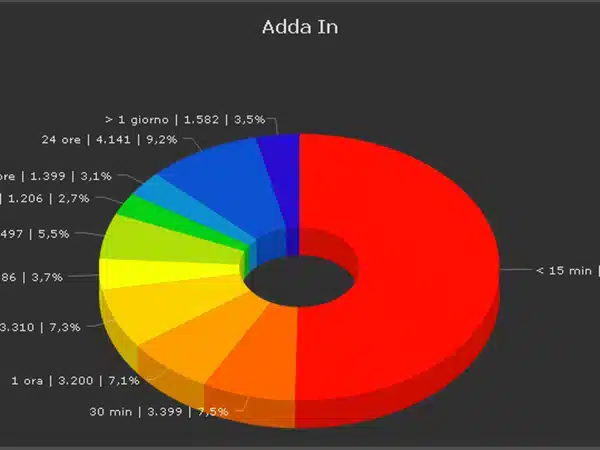 Esso è costituito di un grafico a torta diviso per colori, che indica il tempo e parte da un minimo di 15 minuti per finire con un massimo di 1 giorno. A destra del grafico vi è la tabella con la colonna delle partizioni temporali da un lato e dall’altro quella con il numero di passaggi.