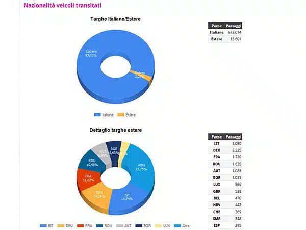 – il primo indica la percentuale dei veicoli italiani transitati rispetto agli stranieri;